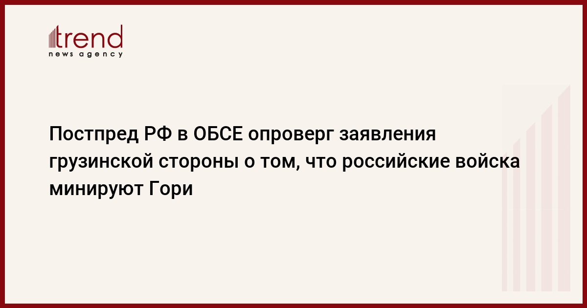 Постоянный представитель РФ в Организации по безопасности и сотрудничеству в Европе (ОБСЕ) Владимир Воронков опроверг заявления грузинской стороны о том, что российские войска минируют грузинский город Гори. Российский дипломат назвал эти обвинения "абсолютной ложью", сообщает Associated Press.