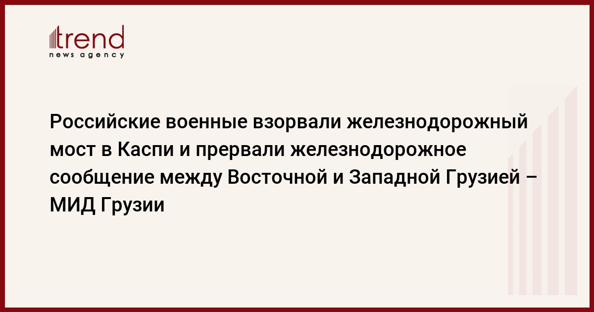 Грузия, Тбилиси 16 августа /корр. Trend Н.Кирцхалиа/ Железнодорожный мост разрушен сегодня в районе Каспи на перегоне Метехи-Гракари. Как сообщили в МИД Грузии, российские военные заминировали и взорвали мост.