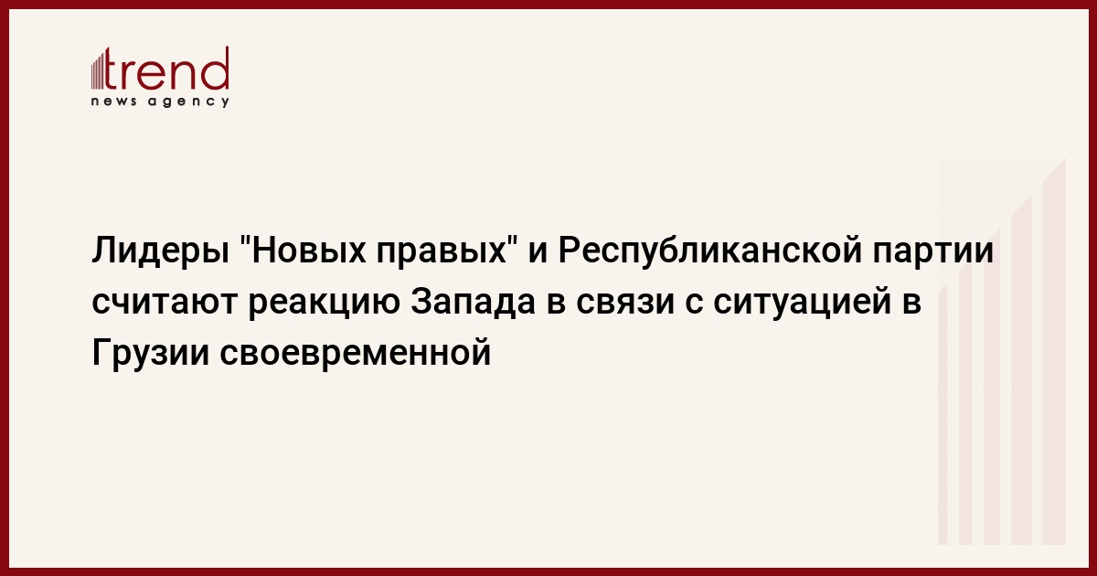 Грузия, Тбилиси, 18 августа /корр. Trend Н.Кирцхалиа/ Лидеры "Новых правых" и Республиканской партии считают реакцию Запада в связи с ситуацией в Грузии своевременной. Как заявил председатель республиканцев Давид Усупашвили, разговоры о запоздалой реакции Запада неправильны.