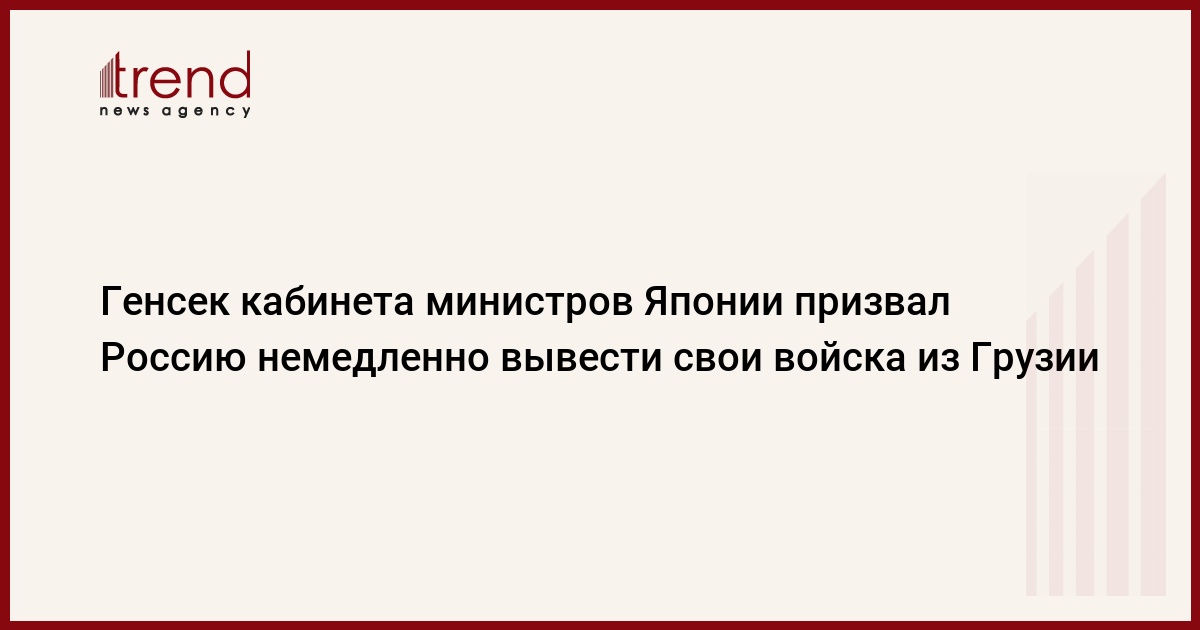 Генеральный секретарь кабинета министров Японии Нобутака Матимура призвал Россию немедленно вывести свои войска из Грузии в соответствии с соглашением о прекращении огня. Он повторил, что подобное военное вторжение вызывает глубокую обеспокоенность со стороны международного сообщества.