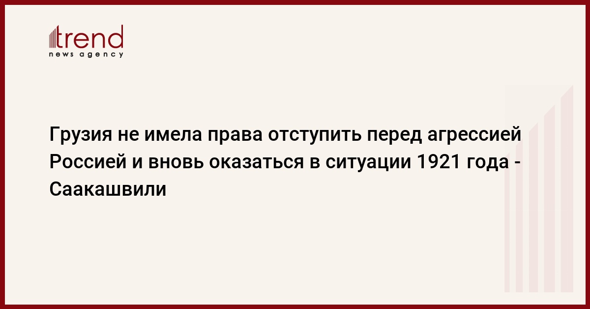 Выступая в пятницу вечером на заседании Совета национальной безопасности, президент Грузии Михаил Саакашвили отметил, что власти страны не имели права отступить перед агрессией Россией и вновь оказаться в ситуации 1921 года.