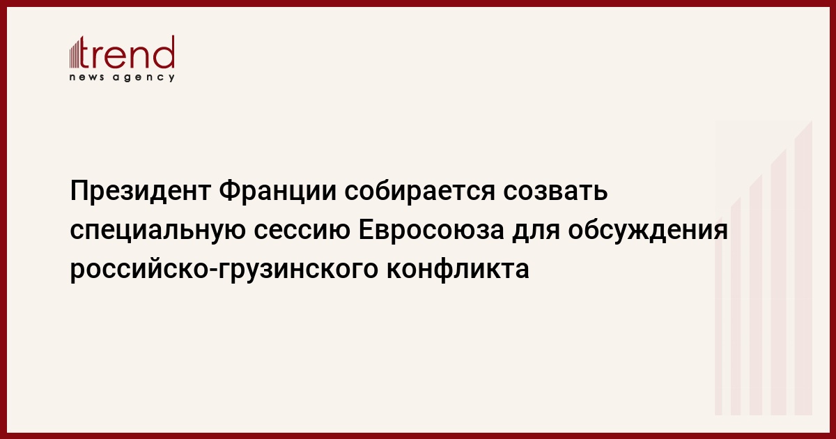 События в Грузии в скором времени будут обсуждаться на специальной сессии Евросоюза. Предположительно, через 8-9 дней ее созовет президент ЕС Николя Саркози, передает Эхо Москвы . Предположительно, подобная сессия пройдет во Франции.
