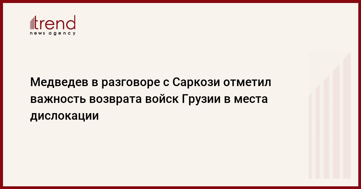 Президент России Дмитрий Медведев в телефонном разговоре с президентом Франции Николя Саркози подчеркнул необходимость выполнения Тбилиси пункта 4 плана "Медведева-Саркози", в соответствии с которым грузинские войска должны быть возвращены в места их постоянной дислокации, сообщает пресс-служба Кремля.