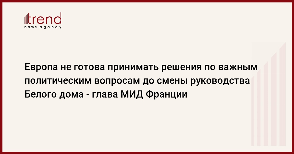 Европейские государства не готовы принимать решения по важным политическим вопросам до смены руководства Белого дома. С таким заявлением выступил министр иностранных дел Франции Бернар Кушнер. По его словам, европейские государства заняли выжидательную политику и ни по одному важному вопросу - конфликту на Кавказе, ситуации в Афганистане и Ираке - не готовы сейчас принимать конкретного решения. Администрация Дж.Буша закончит свою работу в январе 2009г., и до этого, полагает министр, существующее положение дел сохранится.
