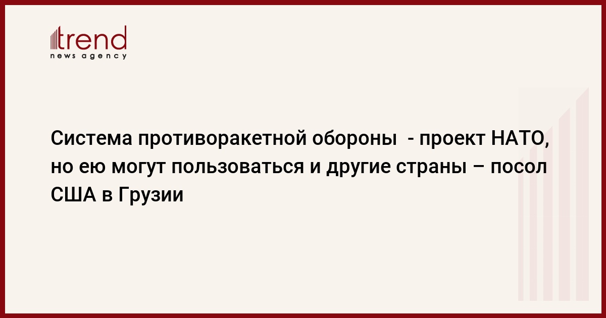 Система противоракетной обороны - проект НАТО, это значит, что страны, которые связаны с НАТО, смогут пользоваться ею. Об этом заявил новый посол США в Грузии Джон Бас в интервью телекомпании "Рустави-2".