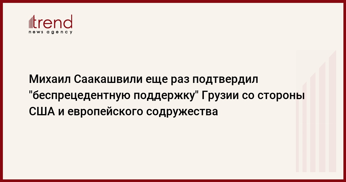 Президент Грузии Михаил Саакашвили еще раз подтвердил "беспрецедентную поддержку" Грузии со стороны США и европейского содружества. Об этом президент Грузии заявил на встрече с журналистами ведущих каналов Грузии.