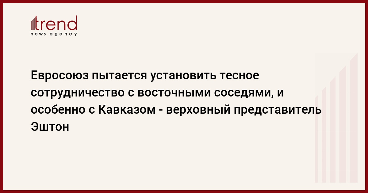 Евросоюз пытается установить тесное сотрудничество с восточными соседями, и особенно с Кавказом, который быстро развивается, сказала в четверг на совместном брифинге с президентом Грузии Михаилом Саакашвили в Батуми верховный представитель ЕС баронесса Кэтрин Эштон.