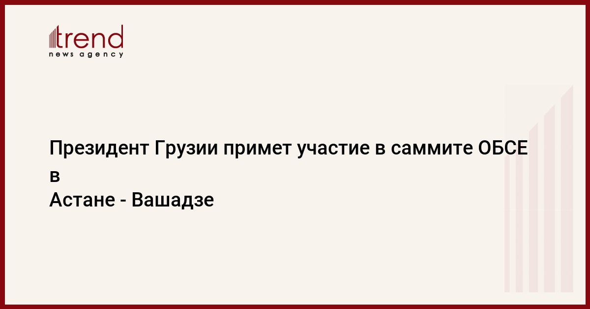 "Грузия с самого начала поддерживала идею Казахстана о проведении саммита в Астане. Естественно, я буду там, будет наш президент Михаил Саакашвили. Сам факт того, что саммит ОБСЕ состоится - это уже достижение, так как его не было 11 лет", - сказал грузинский министр.