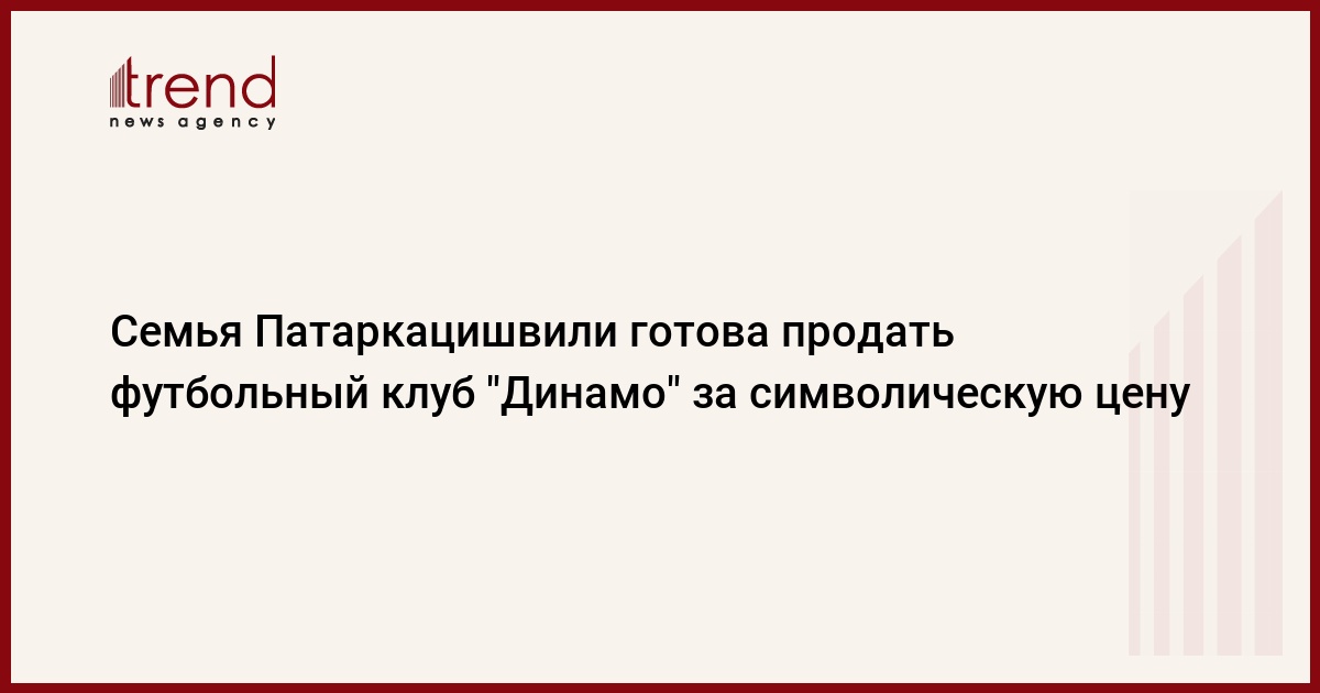 Семья скончавшегося бизнесмена Бадри Патаркацишвили готова продать принадлежавший им футбольный клуб "Динамо" по символической цене, говорится в заявлении семьи, распространенном сегодня.