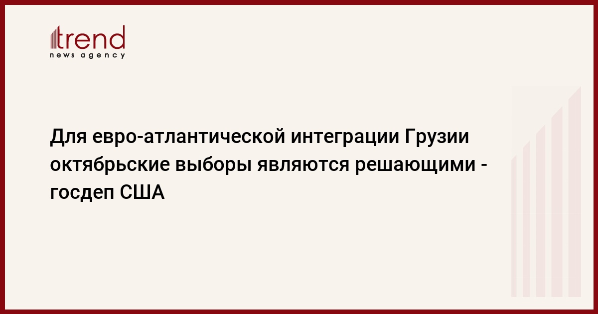 Для евро-атлантической интеграции Грузии октябрьские выборы являются решающими, заявил в Тбилиси в среду на пресс-конференции глава межведомственной делегации США, заместитель госсекретаря по вопросам демократии, защиты прав человека и труда Томас Мелиа.