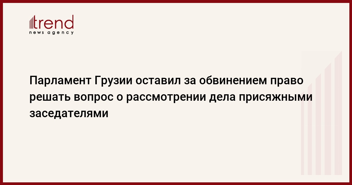 Парламент Грузии в пятницу в ускоренном порядке, во втором и третьем чтении окончательно утвердил поправки в Уголовно-процессуальный кодекс страны, которые лишают обвиняемого права самому выбирать, кто должен рассматривать его дело - присяжные заседатели или судья.
