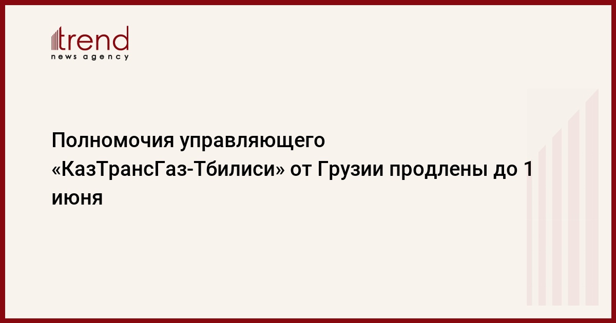 Полномочия управляющего от Грузии, назначенного в компанию "КазТрансГаз-Тбилиси", продлены до первого июня. Решение об этом было принято в пятницу Национальной комиссией по энергорегулированию Грузии.