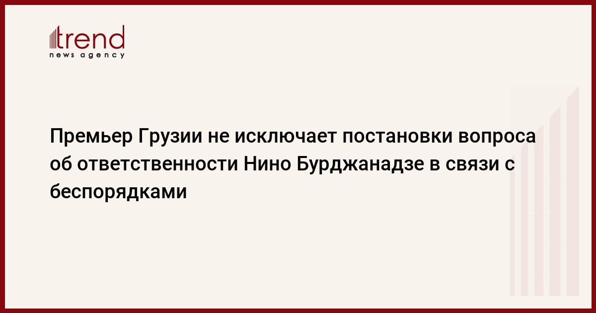 Премьер-министр Грузии Бидзина Иванишвили не исключает, что в связи с событиями 26 мая 2011 года будет поставлен вопрос об ответственности лидера Демократического движения Нино Бурджанадзе.