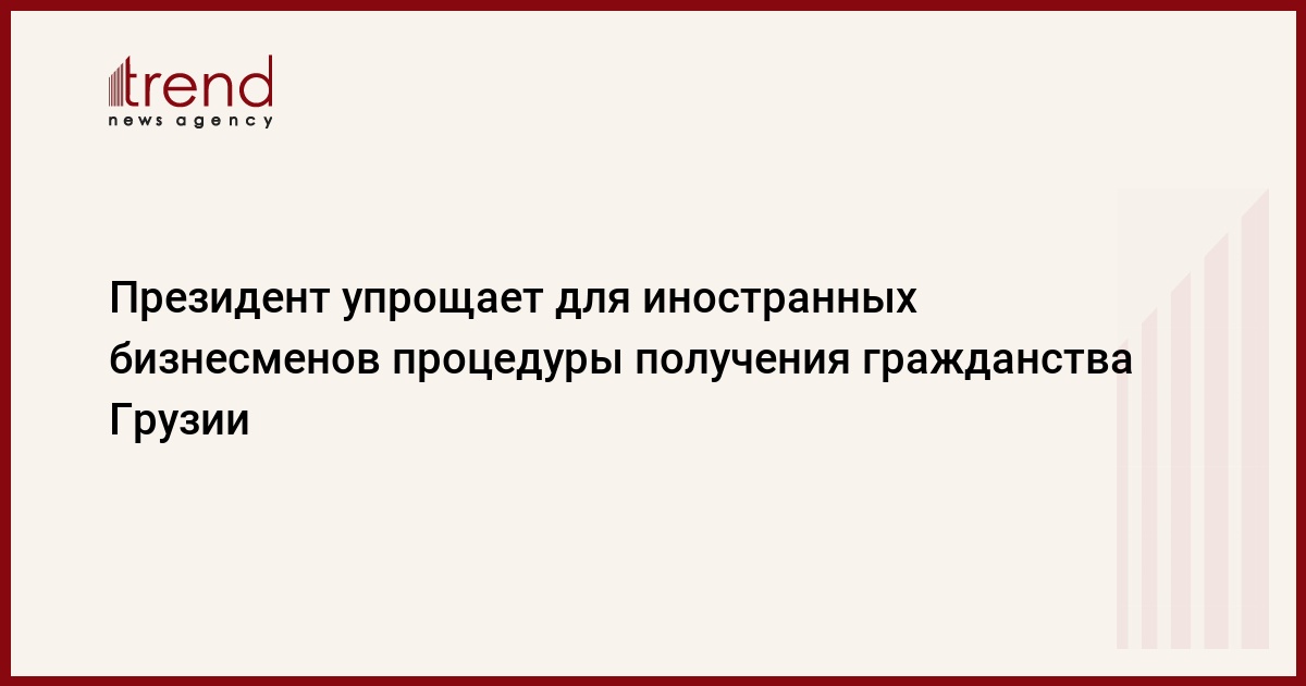 Президент Грузии упрощает процедуры получения гражданства страны для иностранных бизнесменов. Информация в связи с этим распространена во вторник на официальной странице Михаила Саакашвили в Facebook.