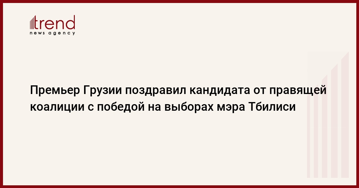 ТБИЛИСИ /Trend/ - Премьер-министр Грузии назвал победившим в первом туре выборов мэра Тбилиси кандидата правящей коалиции "Грузинская мечта" Давида Нармания.