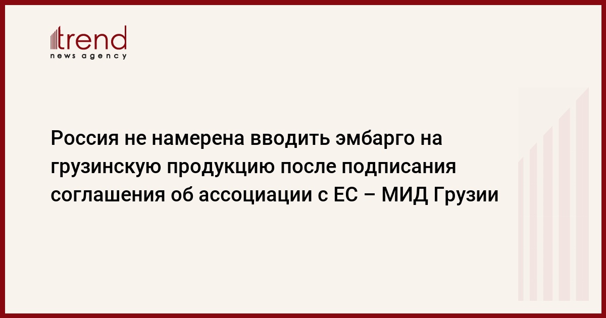 ТБИЛИСИ /Trend/ - Глава МИД Грузии Майя Панджикидзе не считает, что за подписанием соглашения об ассоциации с ЕС со стороны России последует введение эмбарго на грузинскую продукцию.