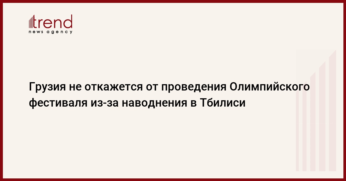 Сильнейшее наводнение в Тбилиси не помешает проведению в этом городе летнего европейского юношеского Олимпийского фестиваля. Об этом ТАСС сообщила вице-президент Национального олимпийского комитета Грузии, олимпийская чемпионка Нино Салуквадзе.