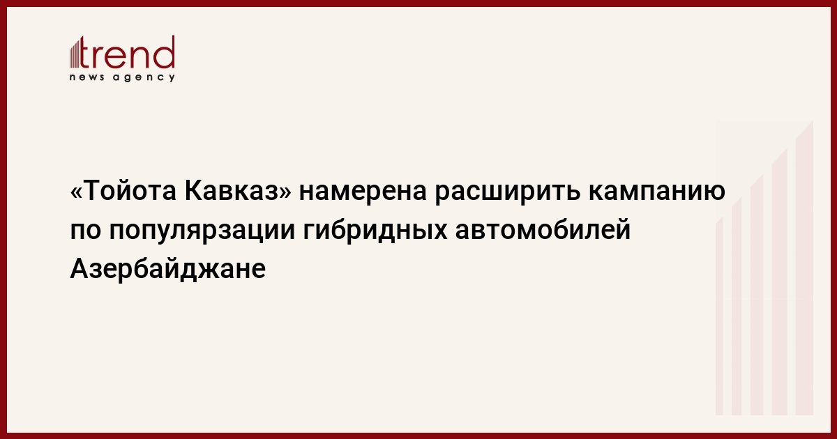 БАКУ/Trend/ - «Тойота Кавказ» - представительство в Грузии регионального дистрибьютора Toyota и Lexus, заинтересовано в осуществлении и расширении рекламной и просветительской работы в Азербайджане, с целью расширения спроса на гибридные автомобили, сказала в интервью Trend представитель компании «Тойота Кавказ» Ирина Маградзе.