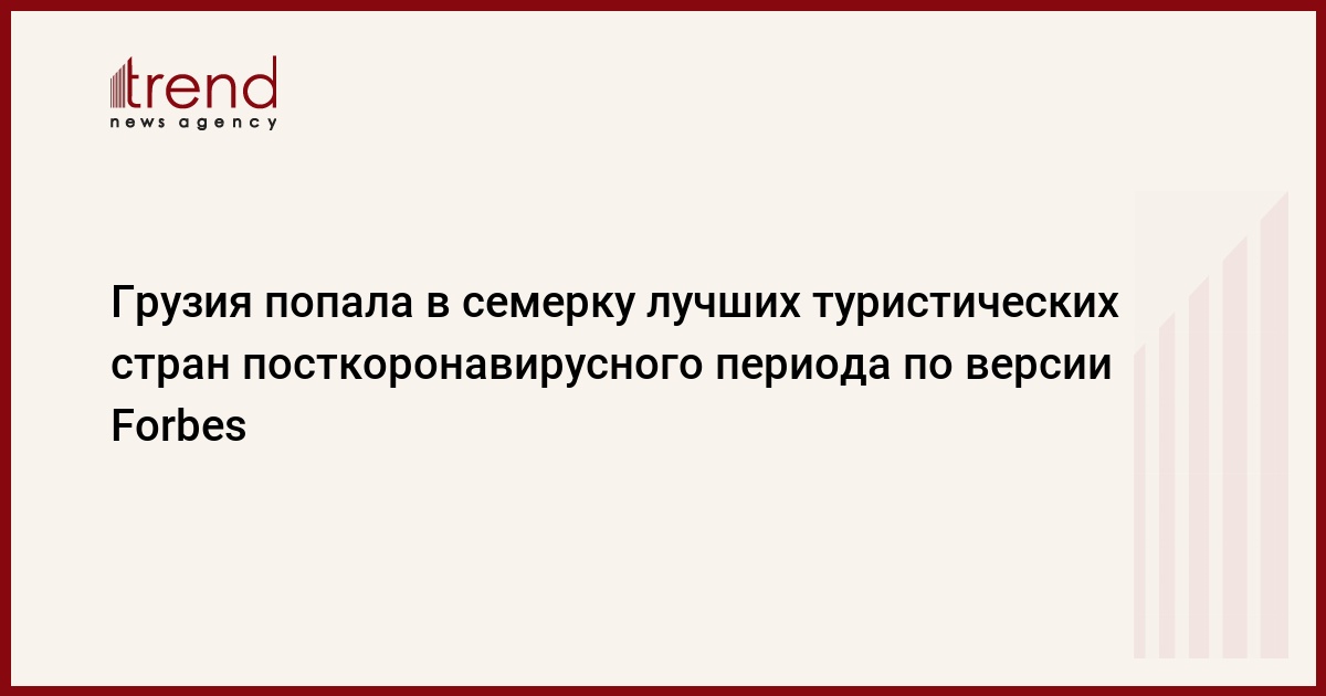 Грузия в семерке лидеров Forbes — влиятельное издание опубликовало список стран с наибольшим туристическим потенциалом в посткоронавирусном мире, передает Trend со ссылкой на Грузия Online.