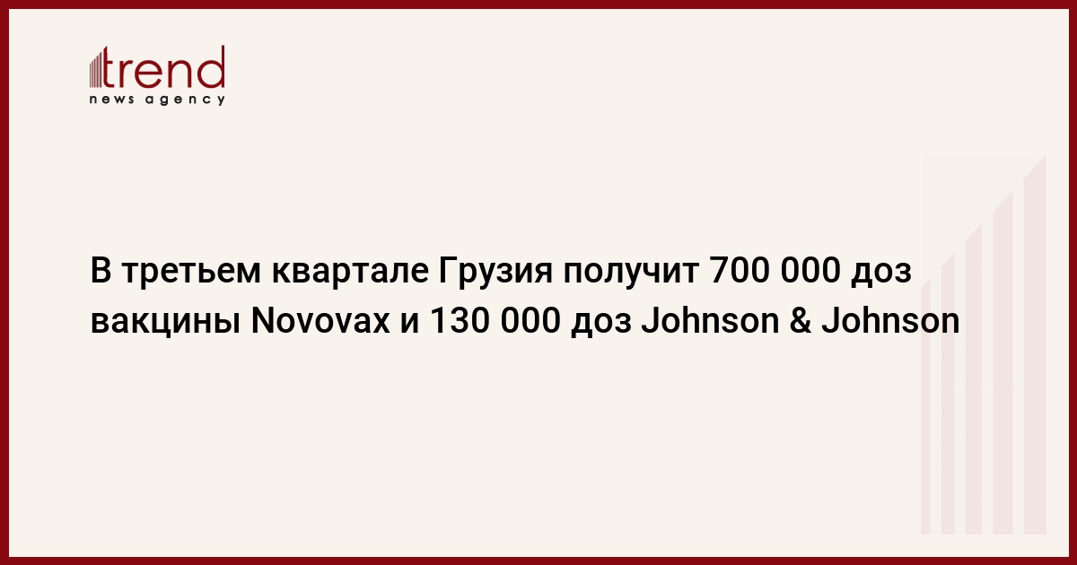 По заявлению главы Национального центра контроля заболеваний Грузии Амирана Гамкрелидзе, в третьем квартале текущего года Грузия получит 700 000 доз вакцины Novovax и 130 000 доз Johnson & Johnson, передает Trend со ссылкой на Грузия Online.