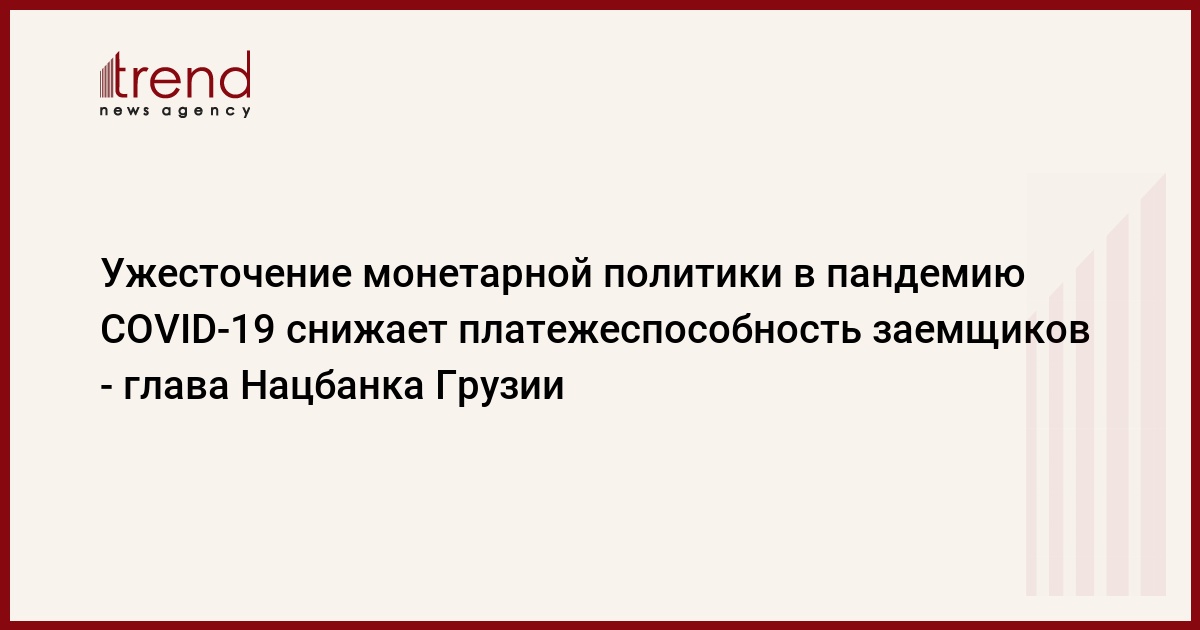 БАКУ /Trend/ - Ужесточение монетарной политики во время пандемии COVID-19 является большой проблемой, поскольку это еще больше снижает платежеспособность заемщиков. Об этом заявил президент Национального банка Грузии Коба Гвенетадзе на V Стамбульском экономическом саммите, сообщает в субботу Trend со ссылкой на пресс-службу банка.