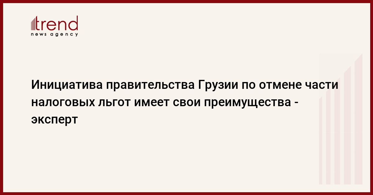 БАКУ /Trend/ - Инициатива правительства Грузии по отмене части налоговых льгот имеет свои преимущества, заявил экономист Консалтинговой группы по политике и управлению (PMCG) Михаил Кукава, сообщает Trend со ссылкой на грузинские СМИ.