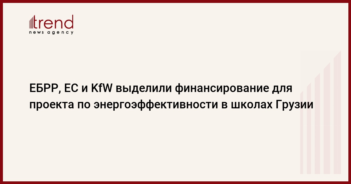 БАКУ /Trend/ - Европейский банк реконструкции и развития (ЕБРР), ЕС и Германский банк развития (KfW) выделили финансирование для проекта по энергоэффективности в государственных школах Грузии, сообщает Trend со ссылкой на пресс-службу ЕБРР.