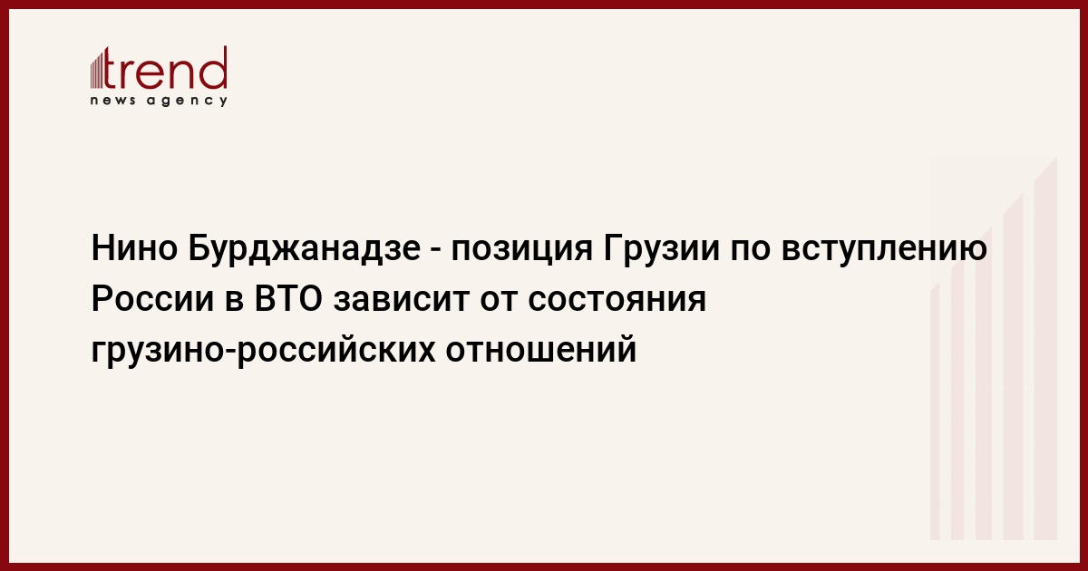 "Россия заинтересована в поддержке Грузии в процессе своего вступления в ВТО - это бесспорный факт. Hо при этом любое решение правительства Грузии будет исходить из того, как будут складываться грузино-российские отношения", отметила Бурджанадзе.