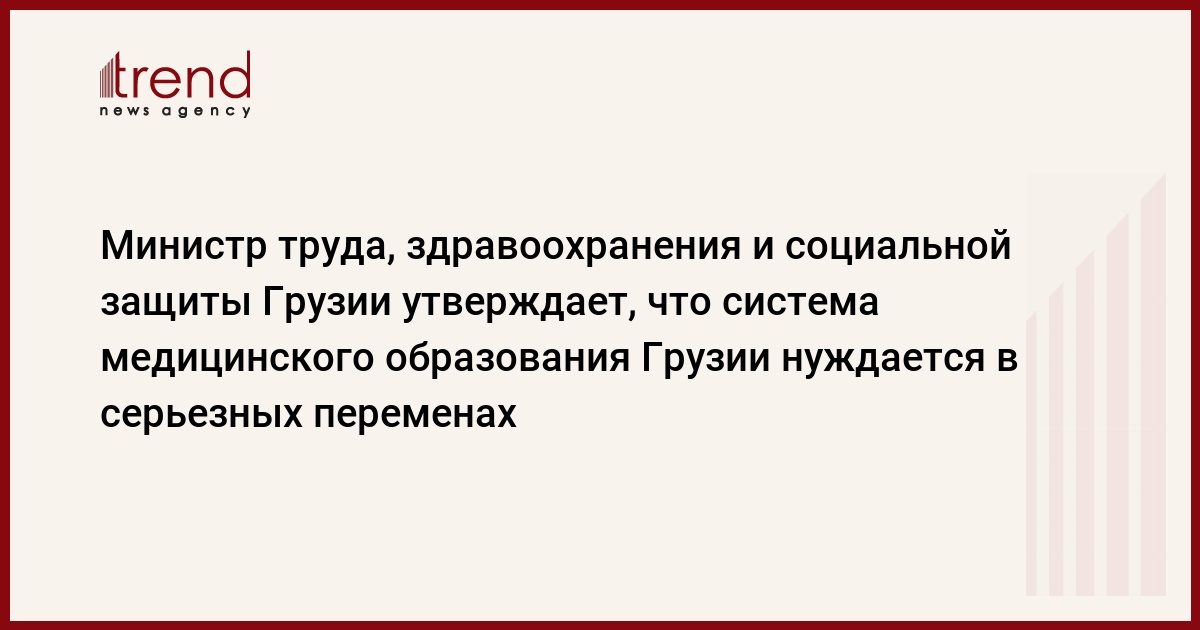 Система медицинского образования нуждается в серьезных переменах, о чем говорят итоги проходящей в Грузии аттестация врачей. Об этом заявил сегодня журналистам министр труда, здравоохранения и социальной защиты Грузии Владимир Чипашвили, который посетил процедуру аттестации.