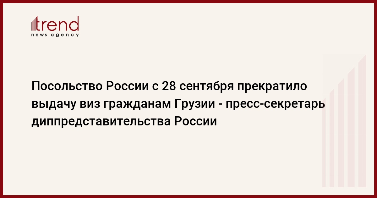 Посольство России в Тбилиси с 28 сентября прекратило выдачу российских виз гражданам Грузии, сообщил агентству РИА Hовости пресс-секретарь посольства РФ Михаил Свирин.