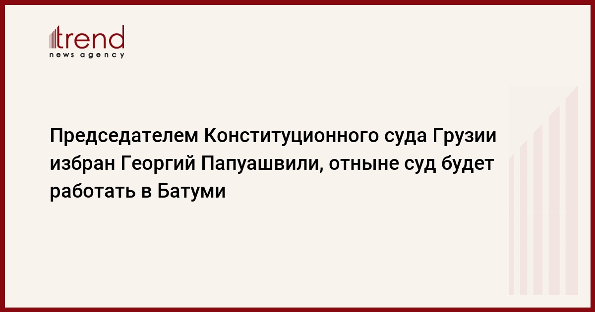 Председателем Конституционного суда Грузии избран Георгий Папуашвили. Об этом сегодня сообщил бывший председатель суда Джони Хецуриани. Он занимал это пост с 2001 года, пятилетний срок его полномочий истек в июне.