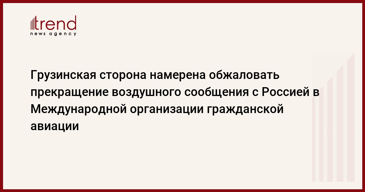 Грузинская сторона намерена обжаловать прекращение воздушного сообщения с Россией в Международной организации гражданской авиации, говорится в пресс-релизе "Грузаэронавигация".