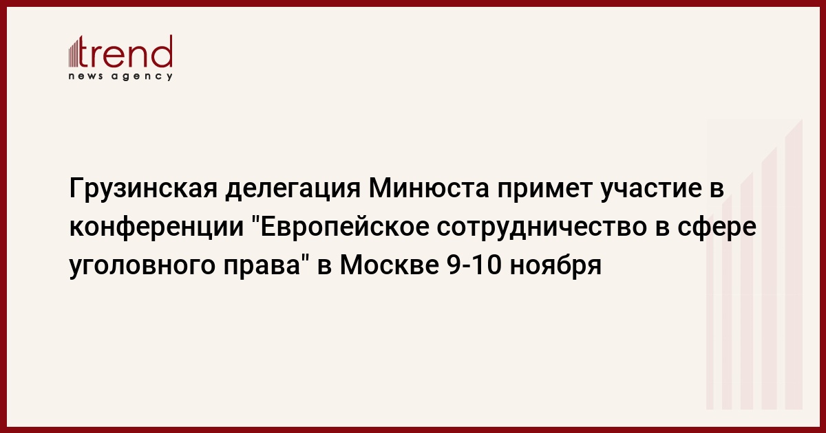 Грузинская делегация Минюста под руководством министра Гии Кавтарадзе примет участие в конференции "Европейское сотрудничество в сфере уголовного права" в Москве 9-10 ноября. Как сообщили собкору " Trend а" в Тбилиси в пресс-службе министерства, конференция организована Советом Европы и правительством Российской Федерации. В мероприятии примут участие представители МВД и Минюста стран-членов Совета Европы.