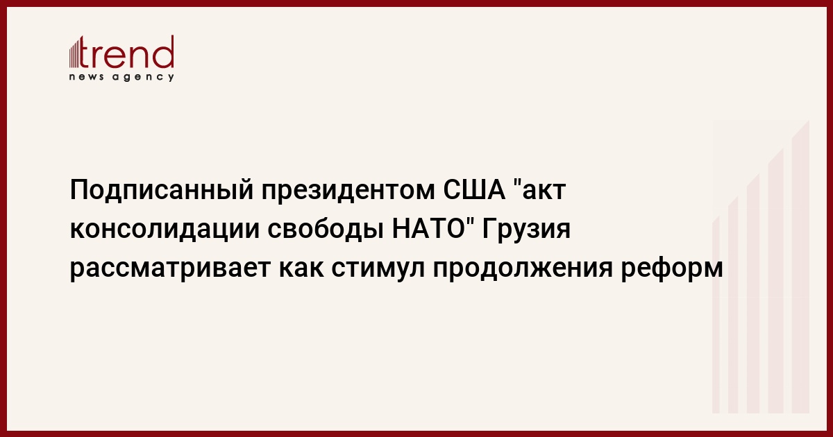 "Акт консолидации свободы НАТО" является самой сердечной поддержкой стремления Грузии, направленного на интеграцию в НАТО на основе демократических реформ и оно было высоко оценено и как стимул для продолжения в Грузии соответствующих необходимых реформ", сказано в заявлении.