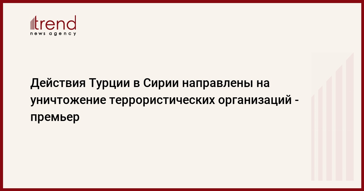 БАКУ /Trend/ - Действия Турции в Сирии целиком направлены на уничтожение террористических организаций. В то же время Анкара стремится обеспечить безопасность своих границ, сказал в пятницу премьер-министр Турции Бинали Йылдырым, передает агентство Anadolu.