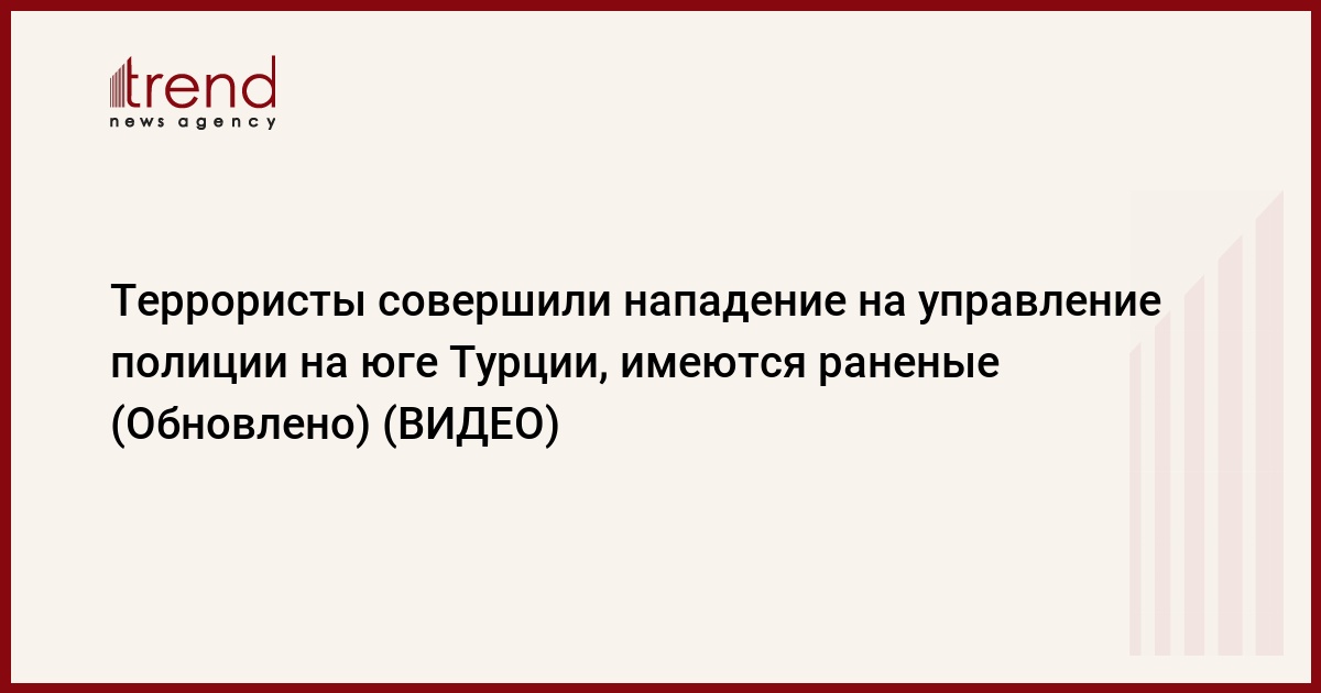 16:51 (UTC+04:00) Трое террористов совершили нападение на управление полиции в провинции Газиантеп на юге Турции, сообщает во вторник телеканал NTV.