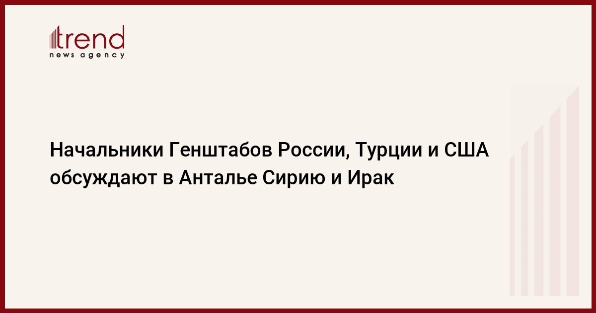 "Начальник Генерального штаба Вооруженных Сил РФ генерал армии Валерий Герасимов, начальник Генерального штаба Вооруженных сил Турции Х. Аккар и председатель комитета начальников штабов ВС США армейский генерал Дж. Данфорд принимают участие в трехсторонней встрече в городе Анталья. На мероприятии запланировано совместное обсуждение вопросов по безопасности в Сирии и Ираке", — говорится в релизе.