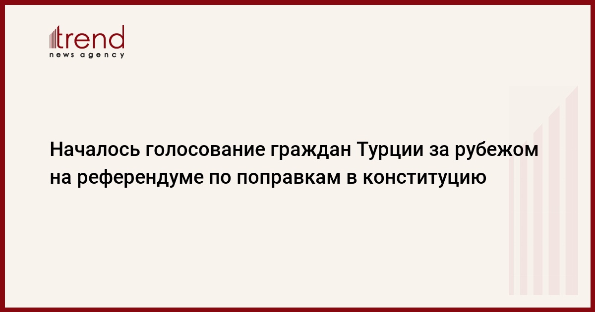 БАКУ /Trend/ - Началось голосование граждан Турции, проживающих за рубежом, на референдуме по поправкам в конституцию, сообщает в понедельник сайт Высшего совета по выборам Турции.