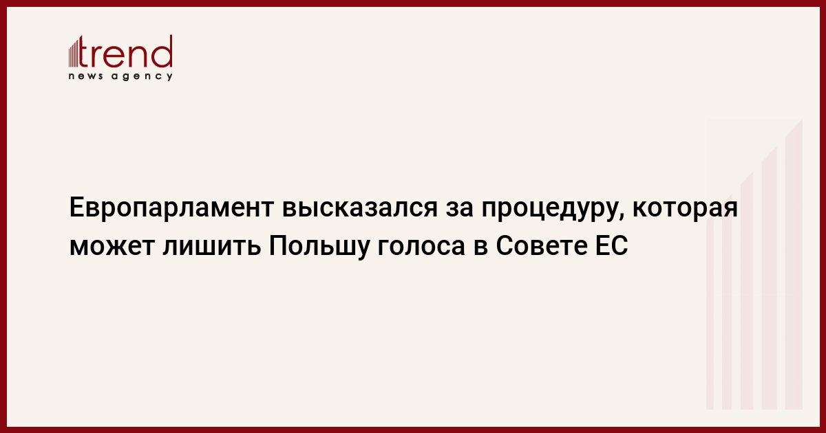 Европейский парламент (ЕП) рекомендовал начать процедуру, которая может лишить Польшу права голоса в Совете ЕС. Соответствующую резолюцию депутаты приняли большинством голосов на заседании в среду в Страсбурге, передает ТАСС.