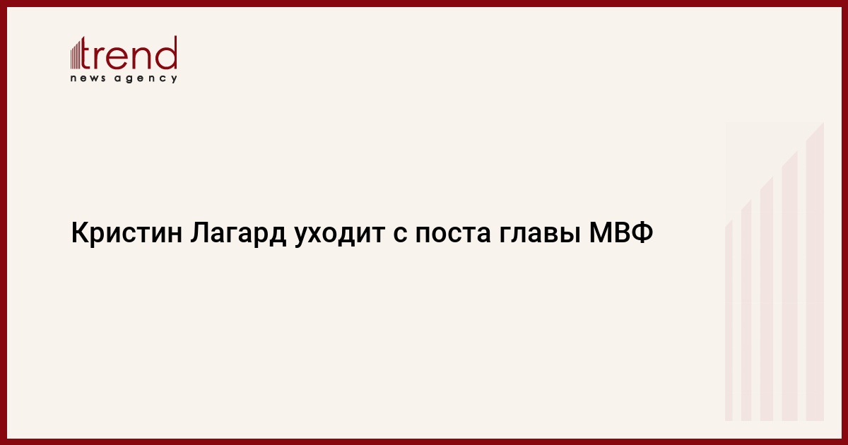 Директор-распорядитель Международного валютного фонда (МВФ) Кристин Лагард объявила, что уходит с этого поста, сообщает "Би-би-си". Свое решение она озвучила всего за несколько часов до голосования по утверждению ее на пост главы Европейского центробанка, передает Trend со ссылкой на "Интерфакс".