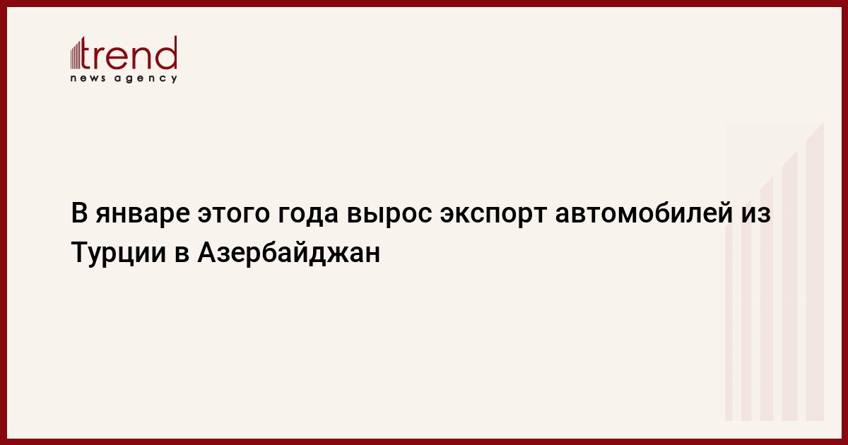 БАКУ /Trend/ - В январе 2020 года вырос экспорт автомобилей из Турции в Азербайджан. Об этом сообщили Trend в среду в министерстве торговли Турции.