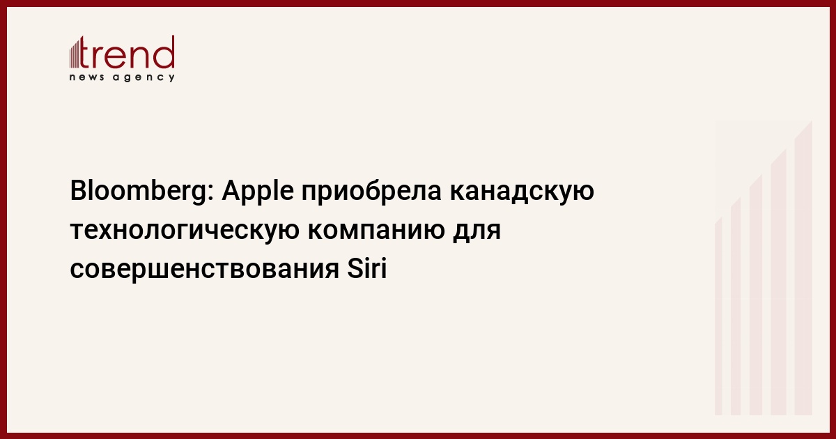 Американская компания Apple подтвердила сделку о приобретении канадского стартапа Inductiv, специализирующегося на разработках технологий искусственного интеллекта. Об этом в четверг сообщило агентство Bloomberg, передает Trend со ссылкой на ТАСС.