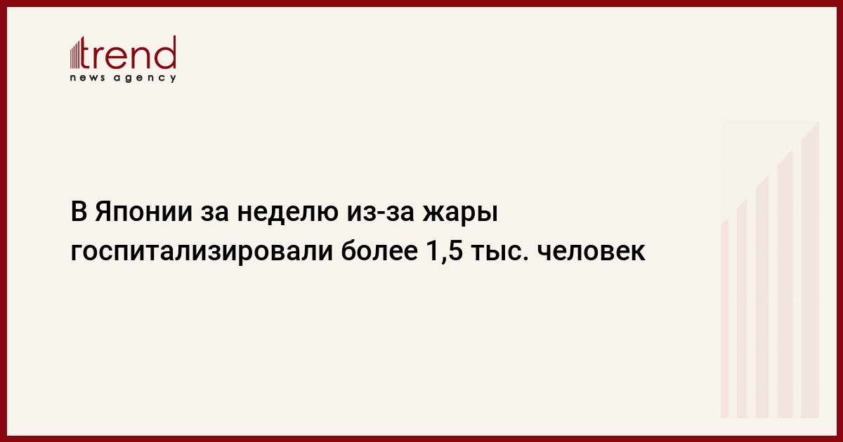 Более 1,5 тыс. человек были госпитализированы с тепловыми ударами в Японии за прошедшую неделю. Об этом, как сообщает Trend со ссылкой на ТАСС, во вторник объявило Министерство по административным делам и коммуникациям.