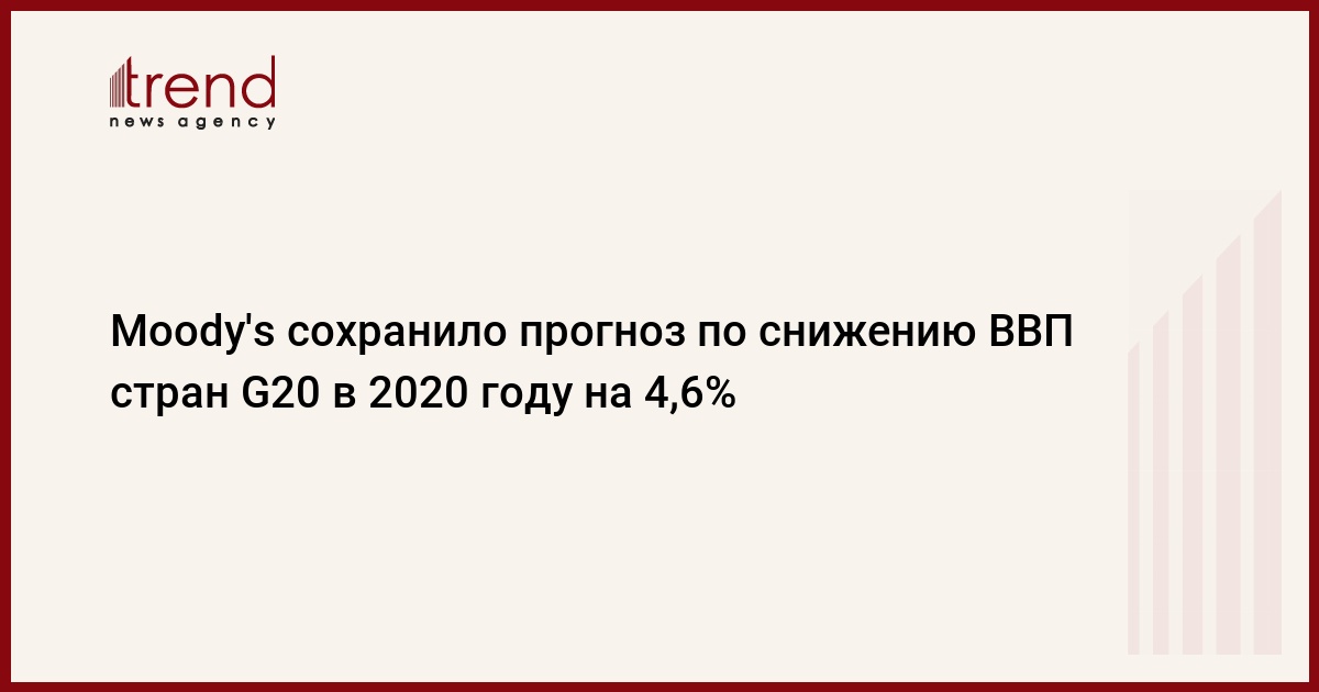 Международное рейтинговое агентство Moody's сохранило прогноз по снижению ВВП стран G20 на 4,6% в 2020 году, говорится в сообщении пресс-службы агентства, передает Trend со ссылкой на ТАСС.