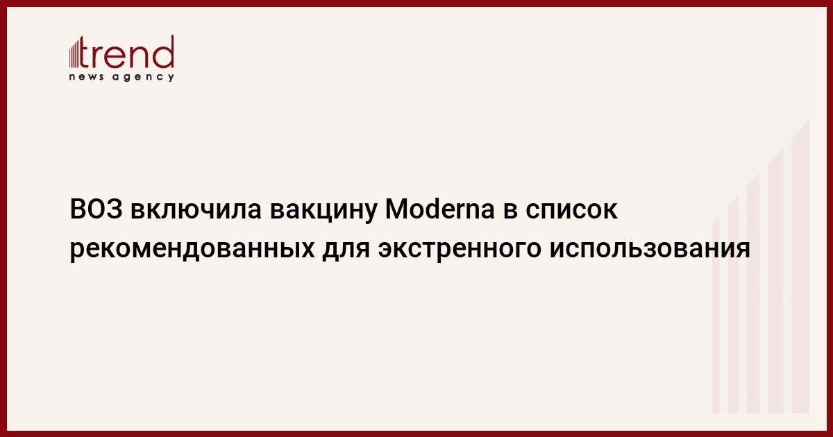 "ВОЗ сегодня включила в список для экстренного использования вакцину Moderna, что делает ее пятой вакциной, получившей экстренное одобрение организации", - говорится в сообщении.