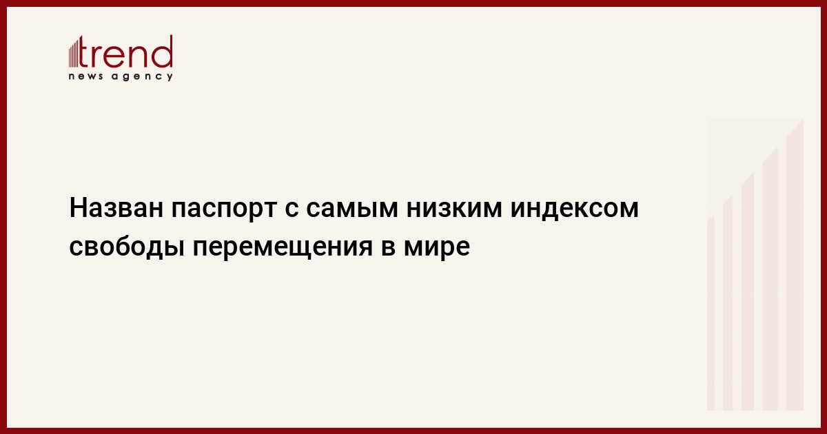 Швейцарская консалтинговая компания Henley & Partners подготовила рейтинг «Индекс паспортов мира», передает Trend со ссылкой на Газета.ru.