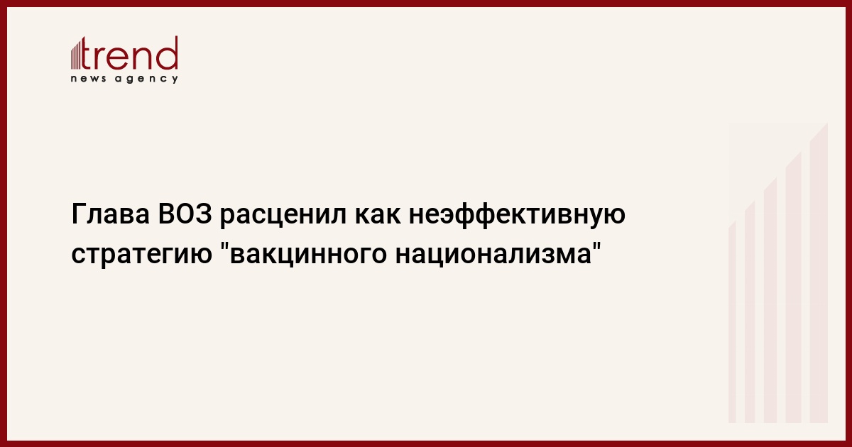 Выступая в формате телеконференции на университетском форуме, организованном Королевским колледжем хирургов Ирландии, глава ВОЗ раскритиковал "вакцинный национализм, при котором горстка стран забрала львиную долю [средств борьбы с инфекцией]". Такая стратегия в сфере здравоохранения, подчеркнул гендиректор, является "морально несостоятельной и неэффективной против респираторного вируса, который быстро мутирует и становится все более действенным при передаче от человека к человеку".