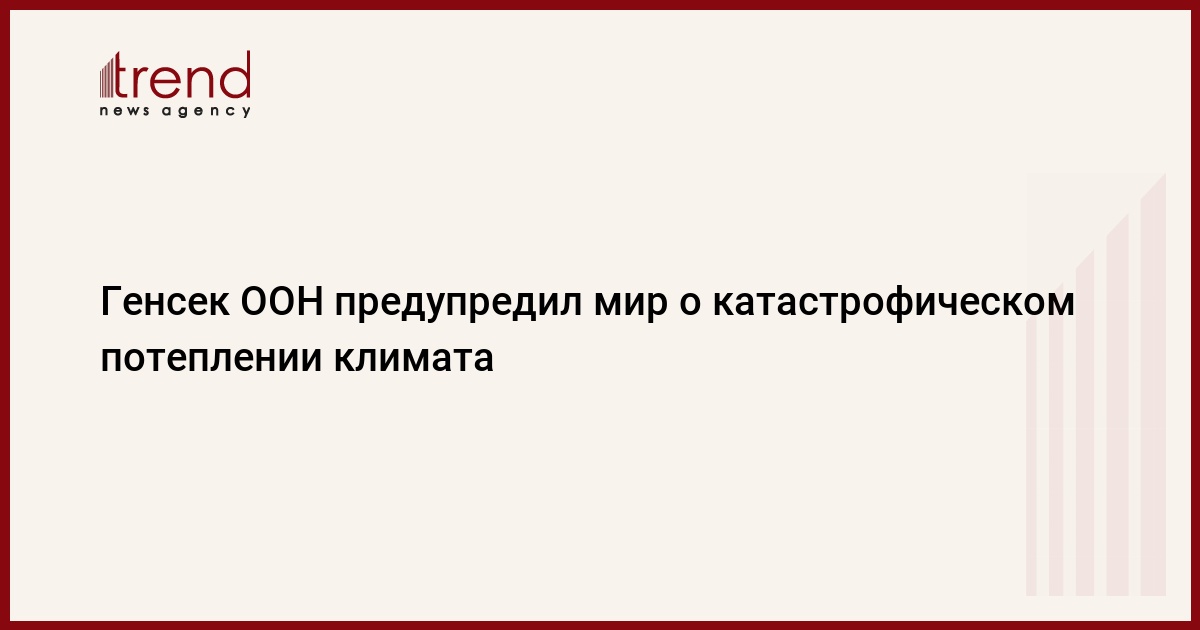 Генеральный секретарь ООН Антониу Гутерриш предупредил, что, согласно докладу Рамочной конвенции ООН об изменении климата, мир находится на пути к катастрофическому потеплению - на 2,7 градуса по Цельсию, передает Trend со ссылкой на Интерфакс.