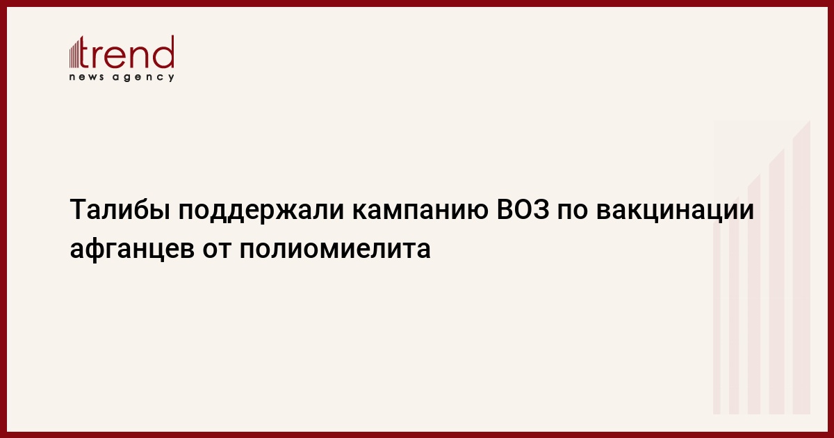 Всемирная организация здравоохранения (ВОЗ) приветствовала решение руководства движения "Талибан" поддержать кампанию ВОЗ и ЮНИСЕФ (Детский фонд ООН) по вакцинации афганских детей по всей стране от полиомиелита, говорится в заявлении, опубликованном во вторник на сайте организации, передает Trend со ссылкой на Интерфакс.