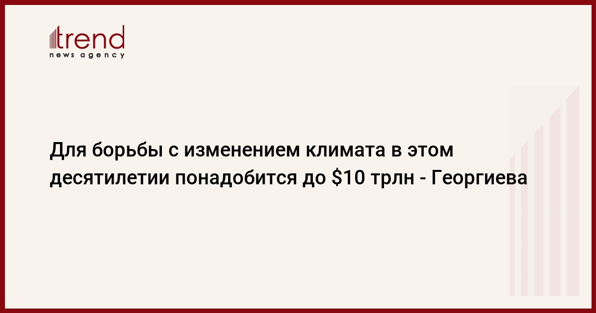 Смягчение вызванных климатическим кризисом мер потребует выделения мировым сообществом от $6 трлн до $10 трлн. Об этом заявила в пятницу директор-распорядитель Международного валютного фонда (МВФ) Кристалина Георгиева, выступая на онлайн-форуме Reuters Next, передает Trend со ссылкой на ТАСС.